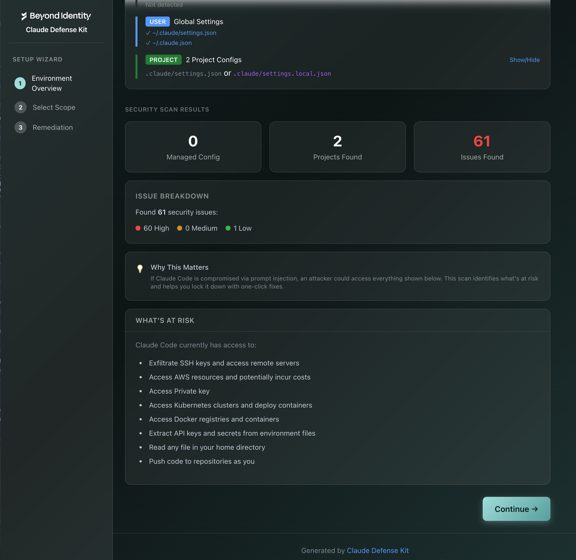 Find out what your Claude Code installation can actually access. See your real blast radius. Get one-click remediation to lock it down before something goes wrong.